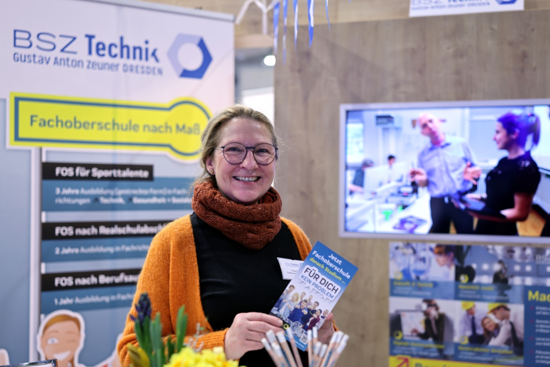 Das BSZ für Technik "Gustav Anton Zeuner" war am Wochenende 23.-25.01.2026 wieder mit einem eigenen Stand auf der Karrierestart-Messe Dresden vertreten. An unserem Stand in der Halle 4 (Stand F6) informierten sich zahlreiche Interessenten insbesondere über die Fachoberschule und die Fachschule. In ihrem Vortrag "Leistungssport und Hochschulzugang unter einem Hut" stellte die Fachleiterin der FOS, Frau Starruß, die gedehnte Fachoberschule für Sporttalente am BSZ für Technik Dresden vor. Zu den prominenten Besuchern unseres Messestandes zählte am 23.01.2026 auch der Sächsische Staatsminister für Kultus Conrad Clemens. Weitere Informationen zur Messe Karrierestart findest du hier: www.messe-karrierestart.de